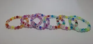 Set di 6 bracciali realizzati con perline colorate e sfaccettate, perfetti per aggiungere un tocco vivace al tuo stile. Fatte a mano - Perline con finitura screpolata di plastica. - Design elastico per una facile vestibilità. - Ogni bracciale presenta una combinazione unica di colori.