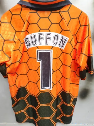 Maglia da calcio con design a nido d'ape. Parma Taglia xl - Colore: Arancione e nero - Numero: 1 - Nome: Buffon