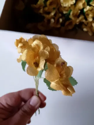 Set di fiori decorativi per abbellire i tuoi spazi. 1€ quattro fiori Sconto se di più. - Colore: giallo gold e verde - Materiale sintetico plastica