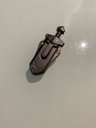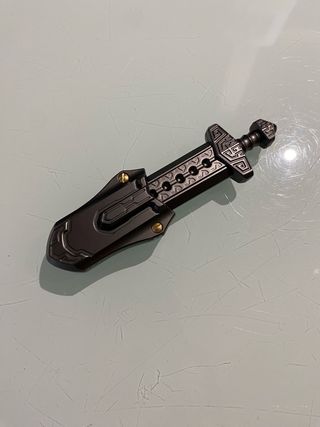 Slider EDC con un design ispirato a una spada. - Materiale metallico resistente. - Dettagli decorativi sulla guardia e sul pomolo.