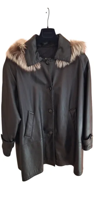 Giaccone vera pelle con cappuccio