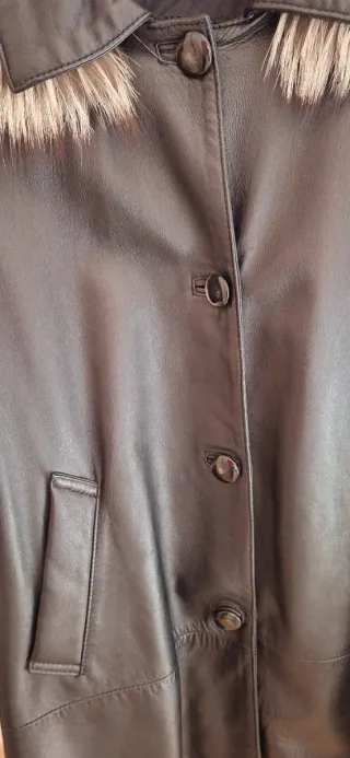 Giaccone giacca parka capospalla con cappuccio staccabile in vera pelle Modello classico con chiusura a bottoni e tasche frontali. Interno foderato. Condizioni: ottime pelle morbida e ben tenuta (come da foto). Taglia: 46, vestibilità regolare. Io che lo indosso sono 170×65. Tutte le misure nelle foto