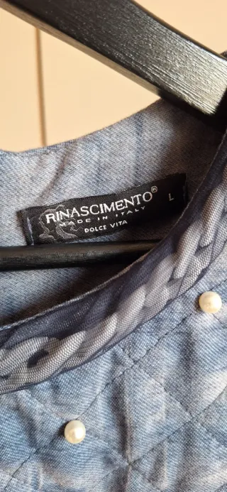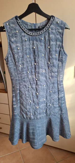 Abito effetto trapuntato con perle. Foderato con tessuto Jersey grigio. Balza al fondo. La taglia è L ma tutte le misure esatte sono nelle foto