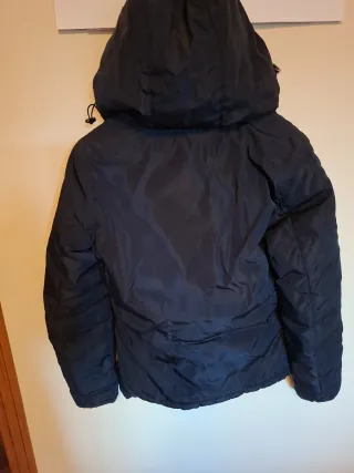 Giubbino reversibile nero, con cappuccio e zip frontale. - Zip laterali decorative con dettagli colorati. - Fodera interna chiara.