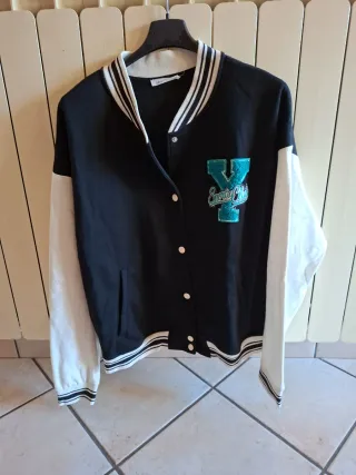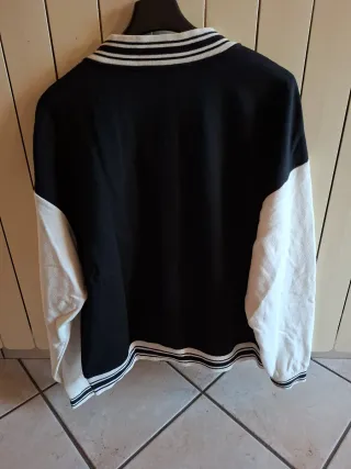 Giubbino stile college con maniche bianche e corpo nero. - Patch Y con scritte Sports Club sul petto. - Collo, polsini e fondo a costine con strisce bianche. - Chiusura con bottoni a pressione.
