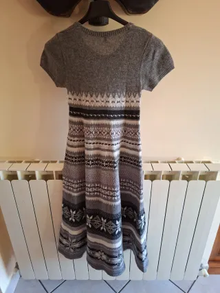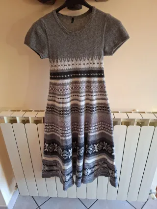 Vestito in lana con fantasia a motivi geometrici e floreali. - Maniche corte. - Girocollo. - Lunghezza al ginocchio.