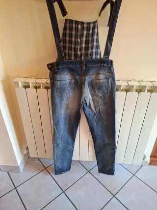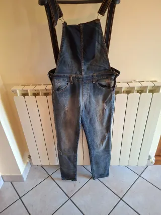 Salopette in denim con un lavaggio effetto used. - Bretelle regolabili. - Tasche anteriori. - Dettagli strappati.