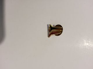 Spilla elegante con finitura dorata. Presenta dettagli color verde e rosso che aggiungono un tocco di vivacità. - Design a forma di freccia stilizzata. - Chiusura a perno sul retro.