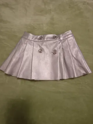 Gonnellina per neonata in similpelle con bottoni. Taglia 6 mesi Marchio BIRBA - Design a pieghe. - Chiusura con bottoni. - Effetto metallizzato.