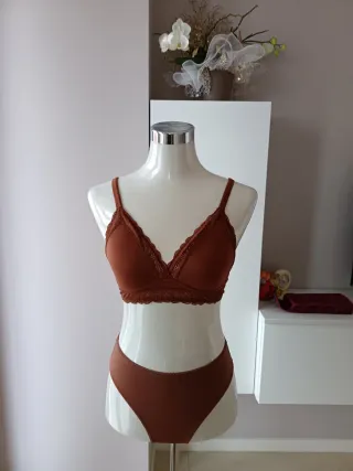 Set composto da reggiseno e slip. - Dettagli in pizzo sul bordo. - Tessuto morbido al tatto.