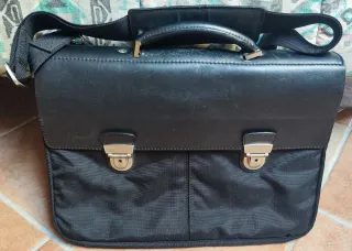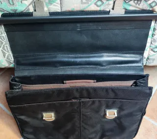 Borsa porta documenti e laptop Spalding. - Materiale in pelle e tessuto. - Chiusure a scatto argentate. - Manico superiore e tracolla regolabile.