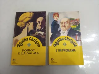 Set, lotto 2 romanzi gialli di: Agatha Christie. Condizioni buone, segnalo segni di uso e del tempo, pagine interne ingiallite naturalmente. 1 "Poirot e la salma" Di Agatha Christie. Pubblicato nella collana Oscar Mondadori. Copertina flessibile. Lingua italiano. Anno 1980. Pagine 194. Trama Il romanzo segue le indagini di Hercule Poirot durante un fine settimana nella fittizia tenuta di campagna degli Angkatell. 2 "È un problema" Di Agatha Christie. Edizione Oscar Mondadori. Copertina flessibile. Lingua italiano. Anno 1981 prima edizione. Pagine 159. Trama Il romanzo racconta la storia di Aristides Leonides, un ultraottantenne mil