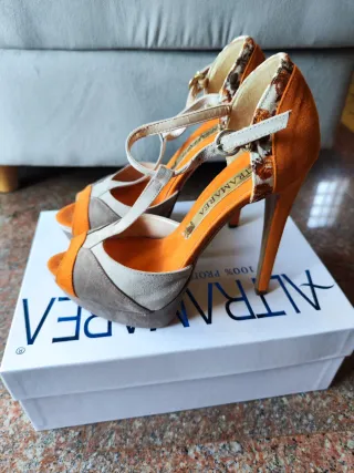 Eleganti sandali Altramarea con tacco alto 13cm. Pelle scamosciata. - Tacco: 13 cm - Dettagli floreali sul tallone e sul cinturino - Design peep-toe con plateau