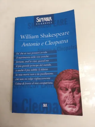 "Antonio e Cleopatra" di William Shakespeare, pubblicato nella collana BUR Superclassici di Rizzoli. Lingua italiano. Copertina flessibile. Anno 2002. Pagine 148. Peso grammi 120. Condizioni ottime, segnalo piccola abrasione su retro copertina, pagine interne ingiallite naturalmente. Sinossi dell'opera La tragedia racconta la travolgente storia d'amore tra la regina d'Egitto, Cleopatra, e il generale romano Marco Antonio, uno dei triumviri dopo la morte di Giulio Cesare. La loro passione si scontra con il potere e il cinismo del futuro imperatore Ottaviano (Cesare Augusto). Trama Principale: Antonio, nonostante sia sposato con Ot