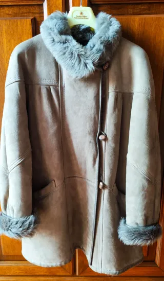 Elegante cappotto sartoriale da donna in vera pelle di montone. - Dettagli in pelliccia vera sul collo e sui polsini. - Chiusura con bottoni. - Tasche laterali. - Fodera interna in vera pelliccia