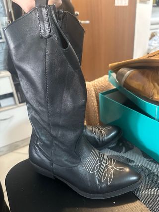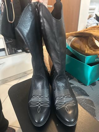 Vendo stivali texani neri con ricami bianchi stile western. Eleganti e facili da abbinare, perfetti con jeans, leggings o vestiti. • Colore: nero • Modello: stile cowboy / texano • Ricami decorativi bianchi sulla punta • Comodi e facili da indossare • Condizioni: pari al nuovo Taglia 37 Ideali per look casual o western 🤠 Vendo per inutilizzo. 📦 Spedizione tramite Vinted