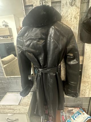 Vendo cappotto nero da donna in ecopelle, taglia S, con interno e rifiniture in pelliccia sintetica. Modello avvitato con cintura in vita, elegante e caldo, ideale per l’inverno,chiusura con zip. Mai usato, come nuovo prezzo trattabile 📦 spedizione rapida