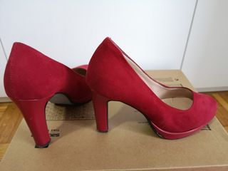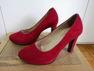 Eleganti scarpe scamosciate rosse con tacco alto. - Materiale scamosciato. - Tacco largo e plateau. - Made in Italy.