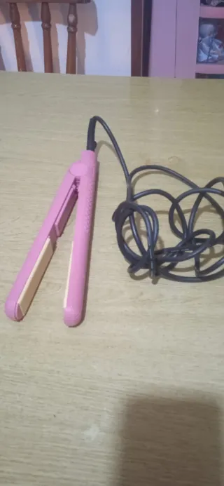 Piastra per capelli di colore rosa, con un design moderno e pratico. - Manico ergonomico per una presa comoda. - Cavo di alimentazione flessibile.