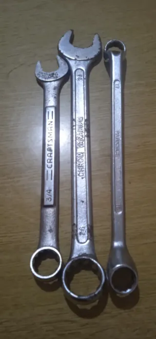 Set di tre chiavi inglesi di marche diverse. - Chiave Craftsman 3/4 - Chiave CHROME VANADIUM 26 - Chiave PARKSIDE 16