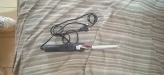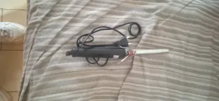 Piastra per capelli con cavo e spina. - Manico nero. - Elemento riscaldante argentato.
