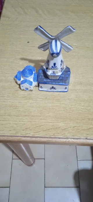 Delizioso set di oggetti decorativi a forma di mulino a vento e casetta, perfetti per aggiungere un tocco di charme alla tua casa. - Design in ceramica con dettagli blu e bianchi. - Ideale come soprammobile o pezzo da collezione.