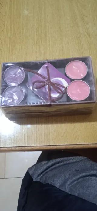 Set di quattro candele profumate, due color rosa e due color viola, perfette per creare un'atmosfera rilassante. - Due candele rosa. - Due candele viola. - Confezione regalo con fiocco.