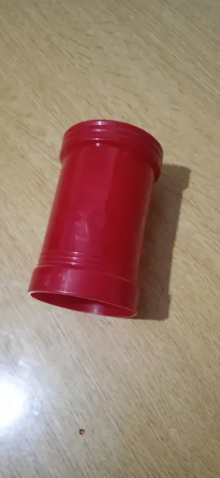 Contenitore in plastica rossa, ideale per conservare piccoli oggetti o come porta-oggetti. - Materiale: plastica - Colore: rosso - Design: cilindrico con scanalature