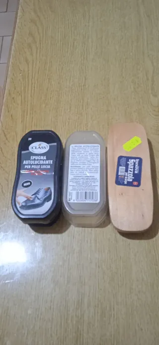 Set per la cura delle scarpe composto da una spugna lucidante e una spazzola. - Spugna lucidante Class per pelli lisce, colore nero. - Spazzola in legno con etichetta Innova Spazzola per capi.
