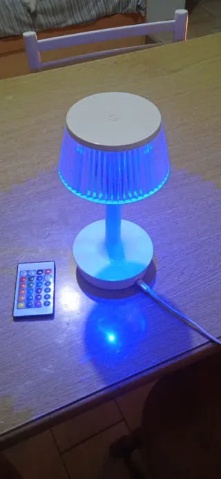 Lampada da tavolo moderna con illuminazione a LED RGB. Perfetta per creare diverse atmosfere. - Luce LED con colori selezionabili tramite telecomando. - Design elegante e minimalista.