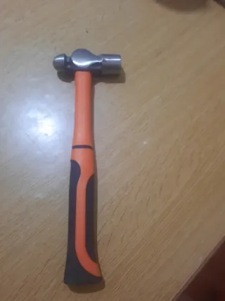 Martello con testa in metallo e manico bicolore arancione e nero. - Testa arrotondata su un lato. - Manico ergonomico.