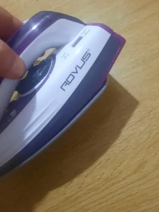 Ferro da stiro ROVUS di colore bianco e viola. - Design moderno. - Impugnatura ergonomica. - Piastra resistente.