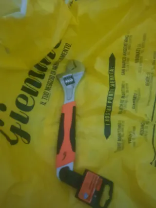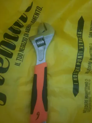 Chiave inglese regolabile con impugnatura ergonomica. - Colore impugnatura: arancione e nero. - Dimensioni: 9 pollici.