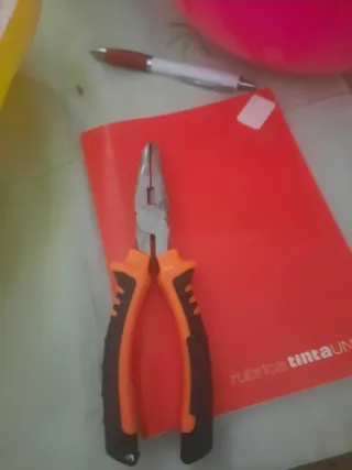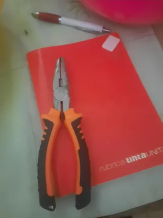 Pinza con mangos ergonómicos de goma en color naranja y negro. - Cuerpo metálico. - Diseño robusto.