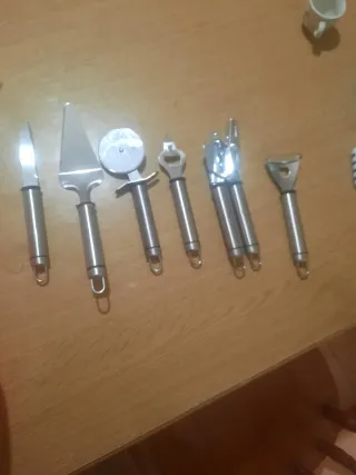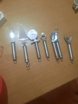 Set di utensili da cucina in acciaio inossidabile, perfetti per ogni necessità. - Coltello affilato - Paletta per torte - Rotella tagliapizza - Apribottiglie - Pinza per alimenti - Pelapatate