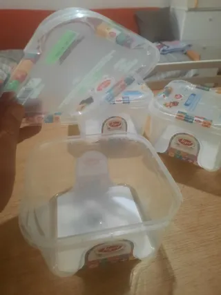 Set di tre vaschette porta alimenti in plastica trasparente. - Materiale: plastica trasparente. - Design impilabile.