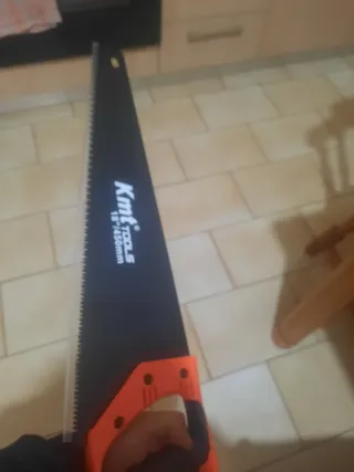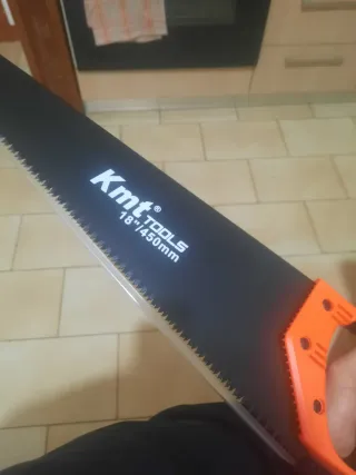 Seghetto manuale KMT TOOLS con lama da 18 pollici (450mm). - Lama in acciaio nero. - Impugnatura ergonomica arancione.