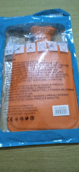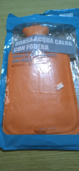 Borsa per l'acqua calda con fodera inclusa, capacità 2000ml. - Colore arancione. - Fodera in tessuto.