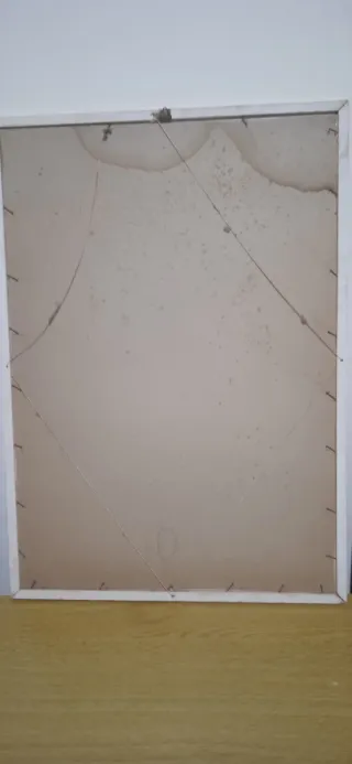 Quadro con segni di usura e macchie. - Cornice bianca. - Filo per appendere presente.