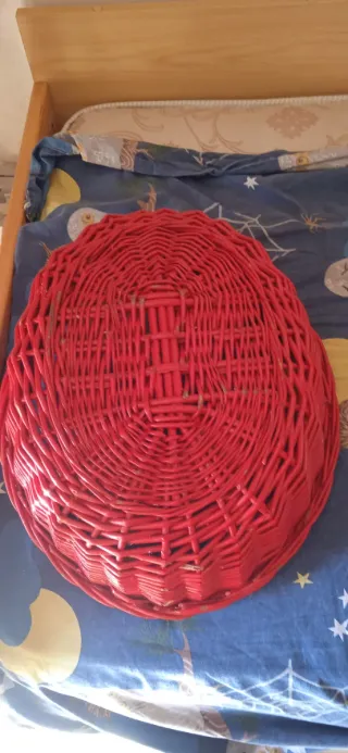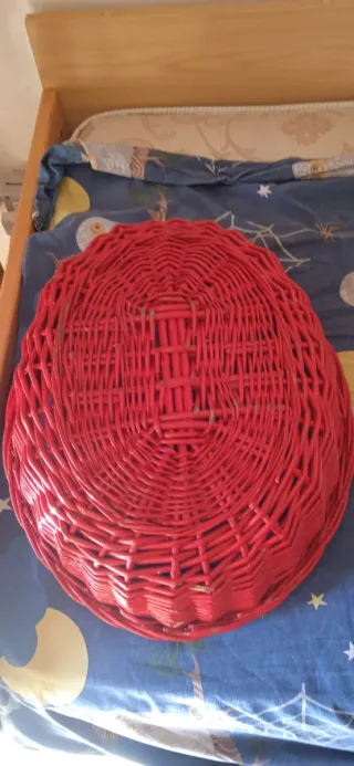 Cestino rotondo in vimini, ideale per contenere oggetti o come elemento decorativo. - Materiale: vimini - Colore: rosso - Forma: rotonda
