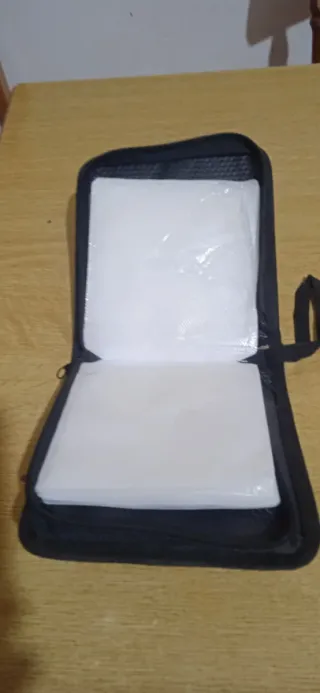Pratico porta CD per organizzare la tua collezione. - Custodia nera con cerniera. - Pagine interne in plastica trasparente.