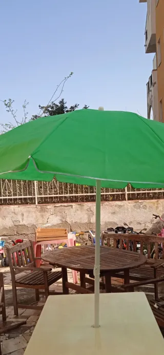 Ombrellone da spiaggia di colore verde, ideale per proteggersi dal sole. - Struttura robusta e facile da montare. - Diametro generoso per ampia copertura.