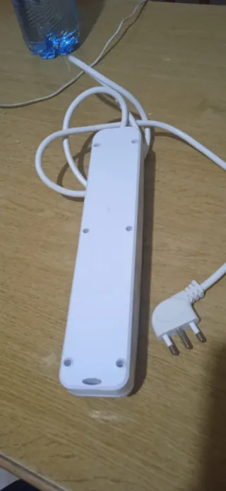 Multipresa elettrica di colore bianco, utile per collegare più dispositivi contemporaneamente. - Design compatto e funzionale. - Cavo di alimentazione integrato.