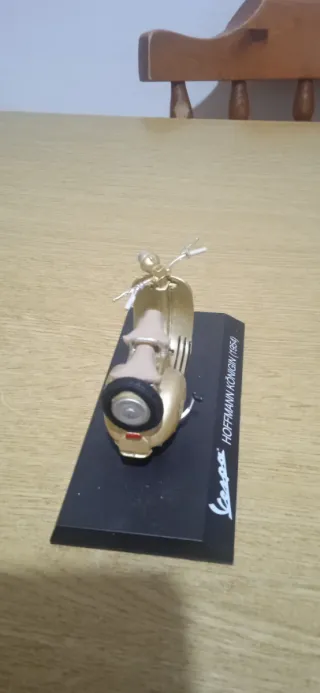 Splendido modellino da collezione della Vespa. - Scala 1:18 - Colore oro - Base espositiva nera con nome modello e anno