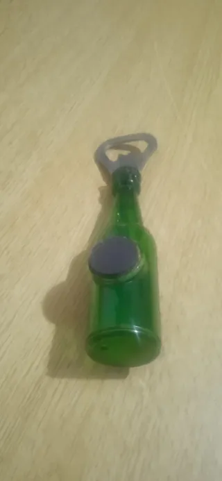 Originale apribottiglie a forma di bottiglia di birra Carlsberg. - Materiale: Vetro e metallo. - Colore: Verde.