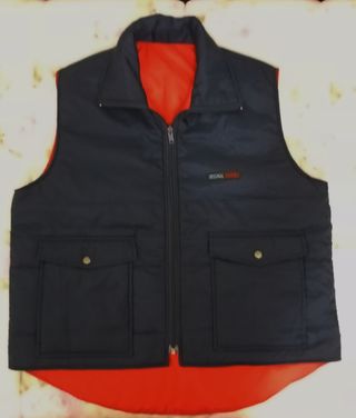 Gilet da uomo reversibile, perfetto per ogni occasione. Mai indossato. Ideale per autunno e primavera!! Pratico e leggero , con doppia tasca anche nel lato reversibile e apertura laterale nel lato blu. - Un lato blu, l'altro rosso. - Taglia M.