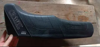 Sedile per Piaggio Vespa 50 modello biposto con logo Camel e NISA. - Design biposto. - Logo Camel. - Logo NISA.