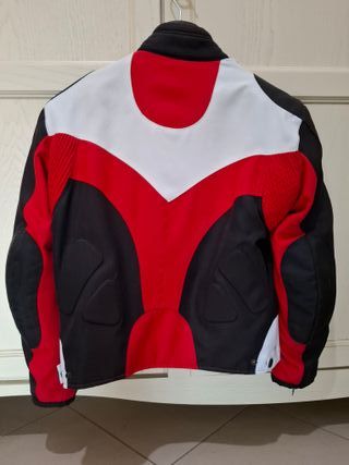 Giacca da moto in tessuto marca Guardian con protezioni colore rosso, ideale per la guida, colori vivaci, bella e profumata. - Design bicolore rosso e nero con inserti bianchi. - Logo Guardian stampato sul petto e sulla zip. - Zip frontale e tasche con zip. - Protezioni integrate. - Taglia: XL - Altezza busto: 60 cm - Larghezza busto: 58 cm - Logo Guardian stampato sul petto. - Zip frontale e tasche con zip. - Polsini e fondo giacca regolabili.