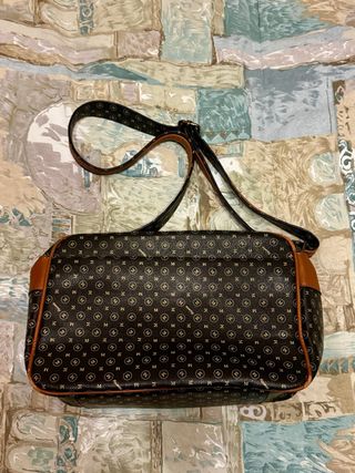 Elegante borsa da donna con un motivo distintivo. - Dettagli in pelle marrone. - Tracolla regolabile. - Chiusura con zip.