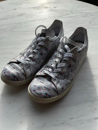 Sneakers Adidas Stan Smith dal design accattivante. - Stampa Topolino 3D su base bianca. - Chiusura con lacci bianchi. - Dettaglio logo su linguetta e tallone. - Lacci nuovi